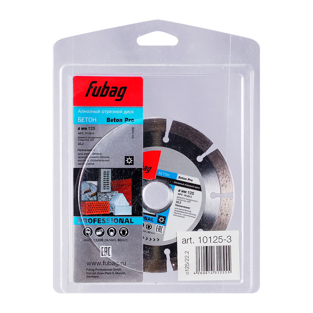 Отзывы о Алмазный отрезной диск FUBAG Бетон Экстра (Beton Extra) D125 мм / 22,2 мм по бетону