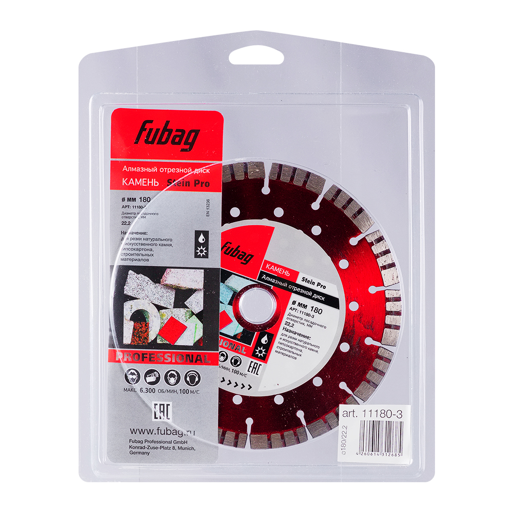 Характеристики Алмазный отрезной диск FUBAG Камень Про (Stein Pro) D180 мм / 22,2 мм по камню