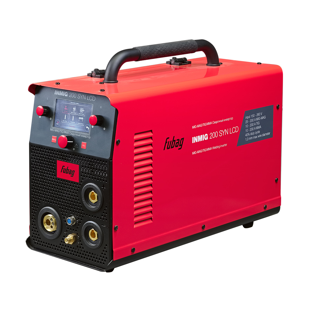 Модельный ряд предлагает варианты с дополнительными режимами сварки MMA и TIG. Возможность использования полуавтомата в роли электродугового инвертора есть по умолчанию у каждой модели серии. Что же касается сварки аргоном (TIG), то такой возможностью обладает сварочный полуавтомат fubag inmig 200 syn и другие модели с синергетическим режимом (SYN – в названии указывает на его наличие).