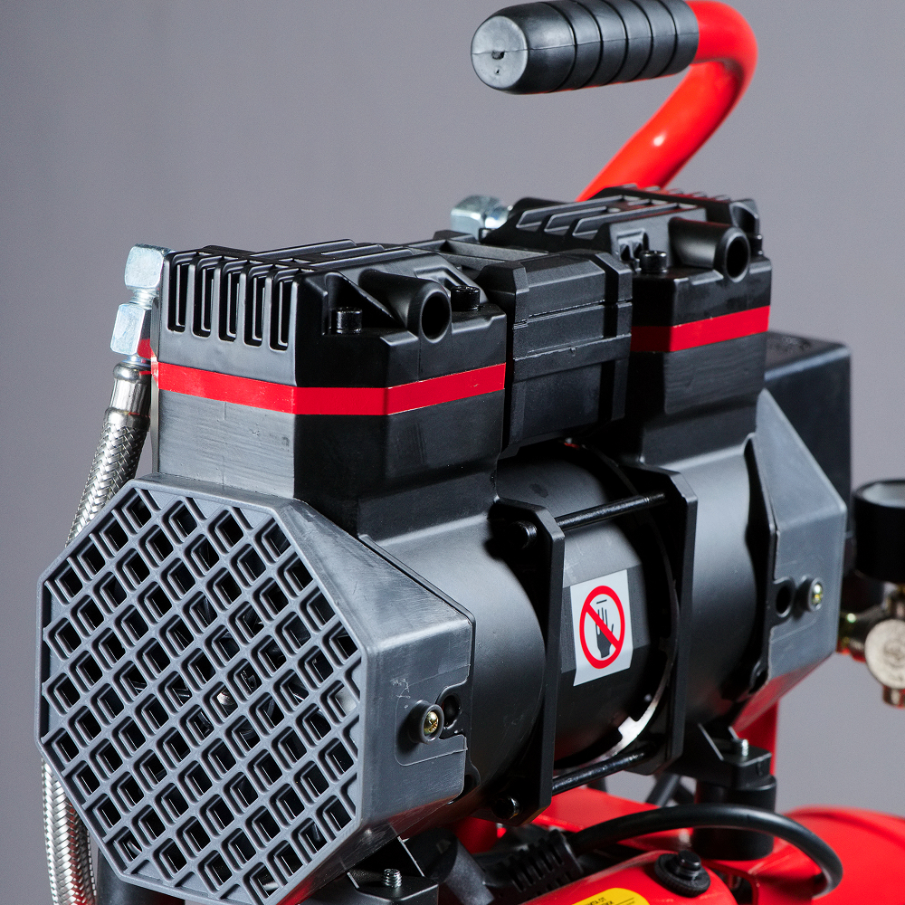 Отсутствие масла позволяет легко транспортировать компрессор в любом положении без риска протечек.
