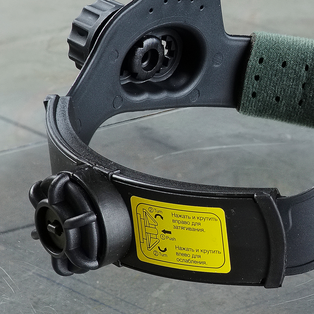 Модель оснащена специальной поворотной (вверх-вниз) системой крепления. Ког¬да сварщик поднимает маску, система перемещает центр тяжести маски вниз, на уровень центра головы сварщика. Такое решение значительно снижает усталость головы и шеи сварщика и повышает комфорт. Температурный диапазон использования маски – от -40°С до +55°С.